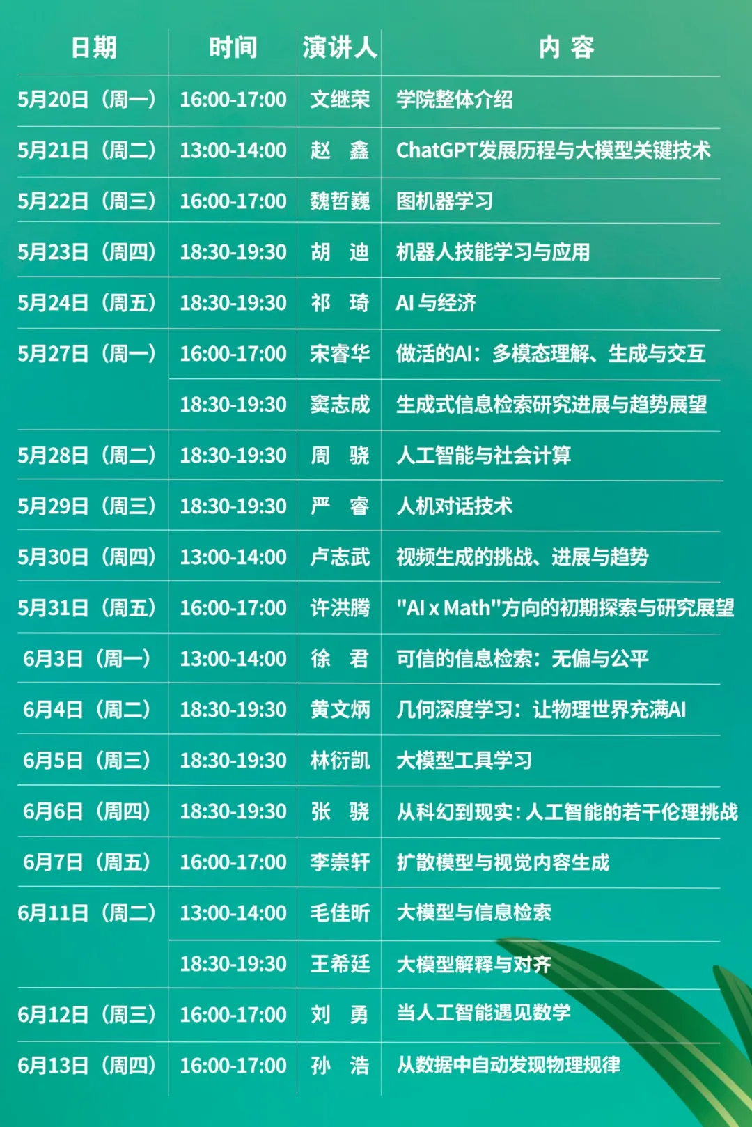 讲者简介:赵鑫,中国人民大学高瓴人工智能学院教授,2014年7月于北京大学获得博士学位,随后进入中国人民大学工作至今。研究领域为信息检索与自然语言处理,共计发表论文100余篇,谷歌学术引用1.8万余次,曾主导研发了玉兰大语言模型,组织编写了大语言模型综述论文《A Survey of Large Language Models》(预印版文章)以及《大语言模型》中文书。曾荣获2020年吴文俊人工智能优秀青年奖、ECIR 2021时间检验奖,CCF-IEEE CS青年科学家奖。