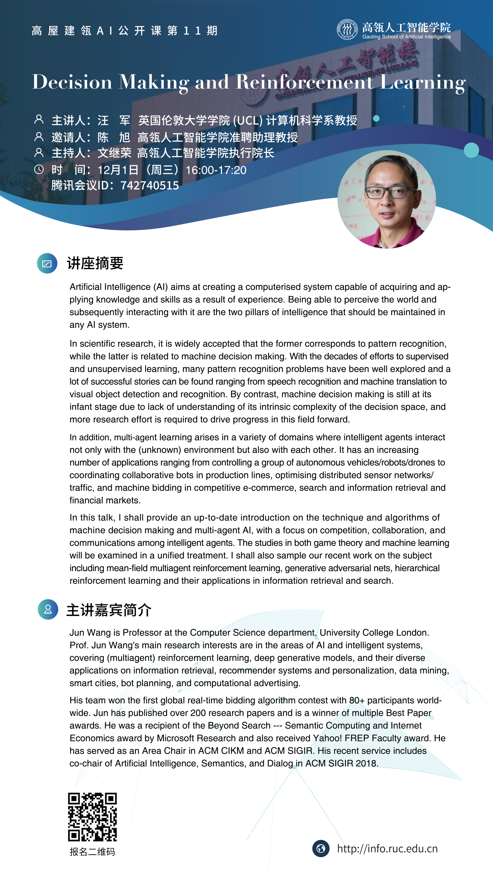 Prof. Jun Wang, UCL