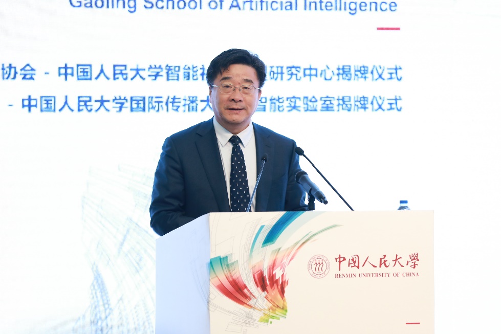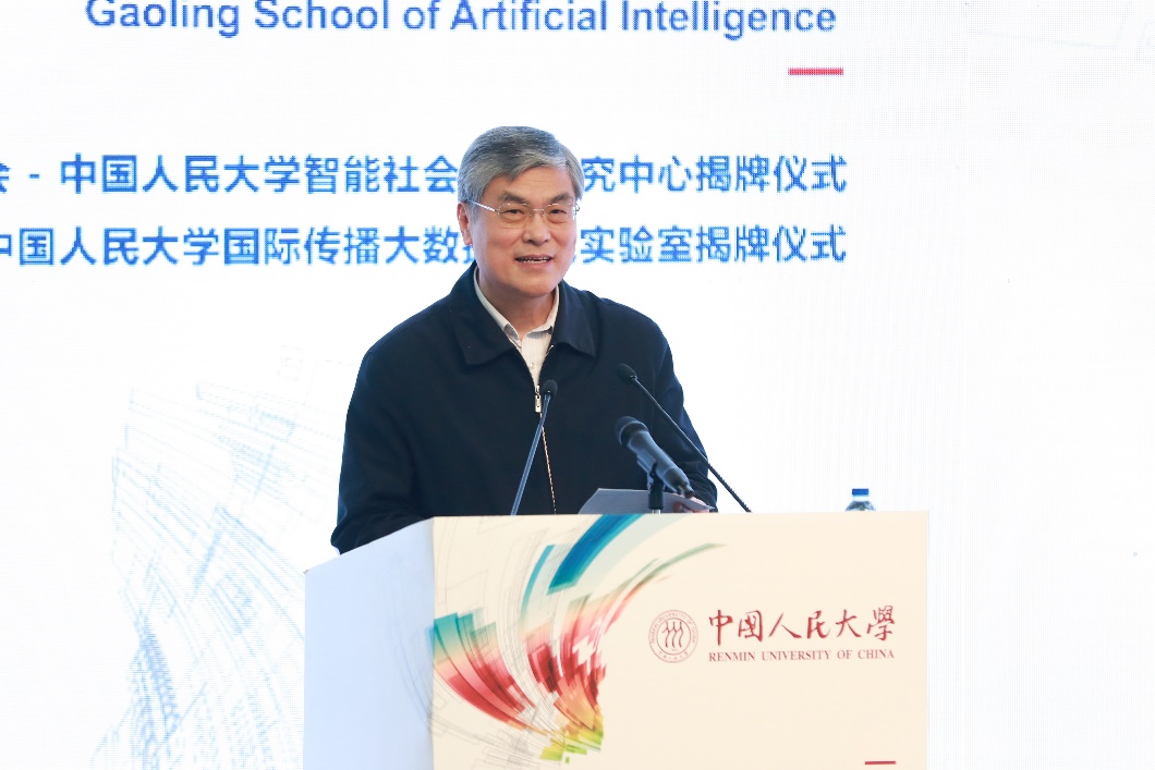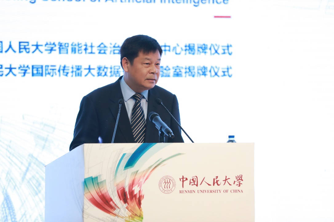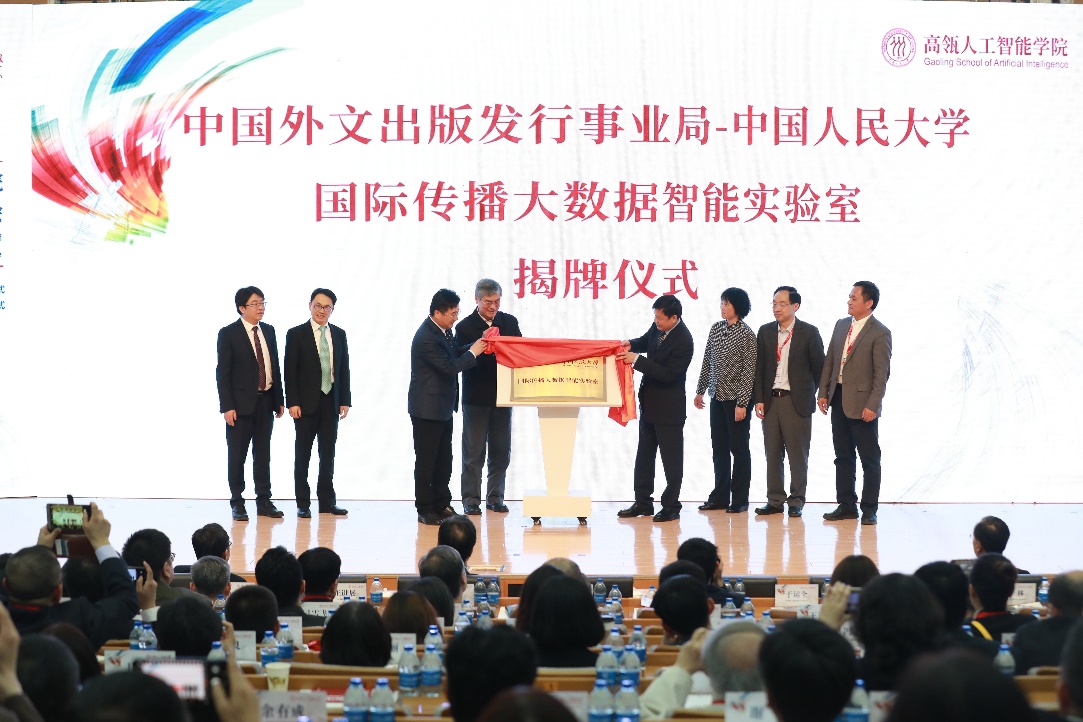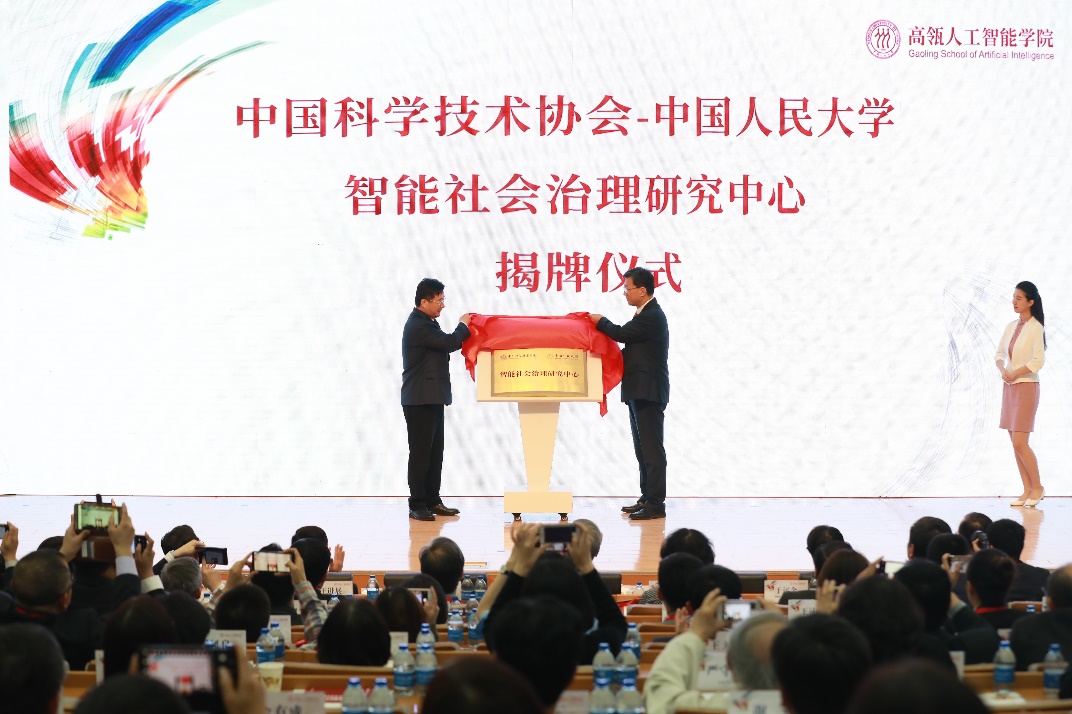 当日,中国科协-中国人民大学智能社会治理研究中心、中国外文局-中国人民大学国际传播大数据智能实验室揭牌。
