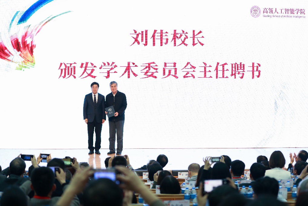 杜鹏宣读聘任文件,中国人民大学教授文继荣担任高瓴人工智能学院执行院长。