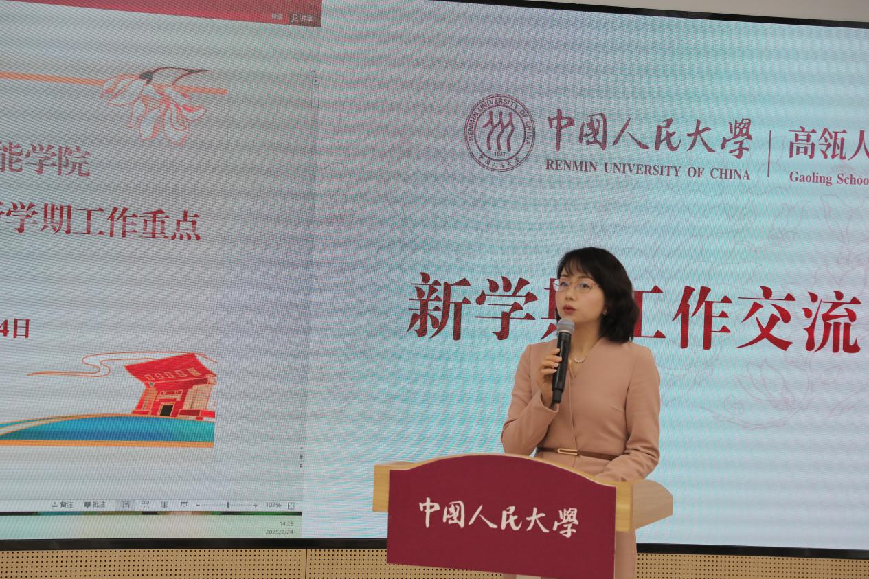 2月24日下午,中国人民大学高瓴人工智能学院在立德楼1826多功能报告厅召开2025年新学期工作交流与部署会。中国人民大学党委副书记青格勒图,党委教师工作部部长、人才工作领导小组办公室主任竺效,理工学科建设处处长王亚培,人事处处长补利军,发展规划处副处长李晶出席会议。高瓴人工智能学院党委书记李艳丽、执行院长文继荣、副院长窦志成、副院长张国富、党委副书记张育铭以及全体教职工参加会议。会议由学院党委书记李艳丽主持。