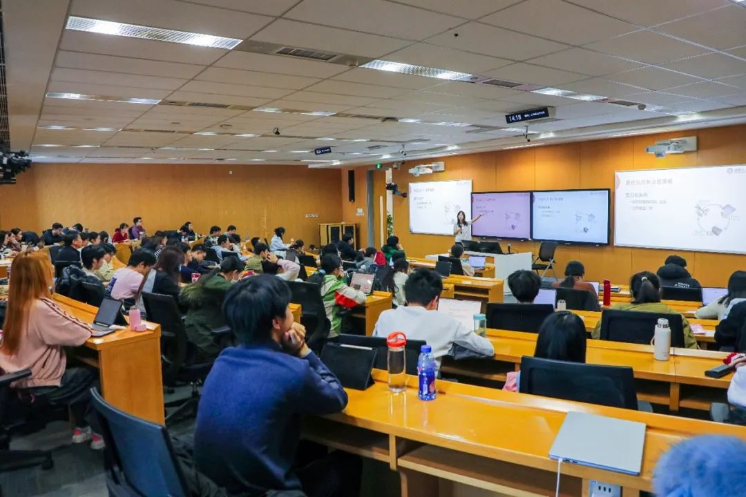 随着讲座的深入,祁琦引导学生们探讨互联网时代下的经济现象和新问题,特别是广告拍卖、智能营销和流量分配等场景。她以广告拍卖为例,提出了如何在最大化广告商利益的同时保护消费者权益的机制设计问题,引发了大家的思考。