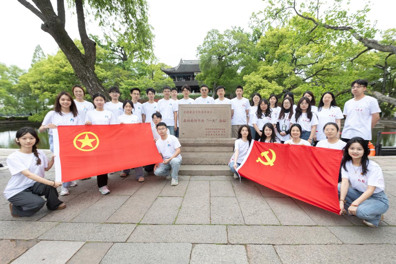 27日清晨,实践队来到了嘉兴南湖,瞻仰红船原址,感悟建党初心。师生们一同漫步湖心岛畔,聆听革命故事,重温红船精神,深刻感悟党的初心和使命。从一叶红船到巍巍巨轮,南湖湖心岛上的烟雨楼见证了中国共产党带领中国人民和中华民族实现从站起来、富起来到强起来的伟大飞跃,也见证了中国共产党逐渐发展成为拥有9800多万党员的世界上最大的马克思主义执政党。