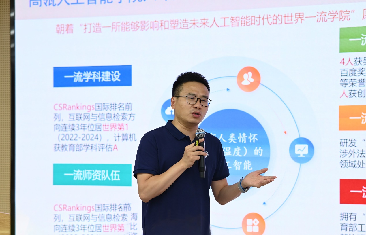 在学术报告厅内,营员们聆听了七场精彩的主题报告,与老师们面对面交流。来自高瓴人工智能学院的毛佳昕、苏冰、胡迪、李崇轩、赵鑫和孙浩老师依次为同学们带来了《人工智能基础》《Python与机器学习》《计算机视觉》《生成式人工智能》《自然语言处理与大模型》《AI+科学》的主题报告。特邀讲师姜宇宁先生以《AI工业界前沿应用》为题,和同学们一起深入探讨了人工智能技术在重塑推荐系统方面的进展。