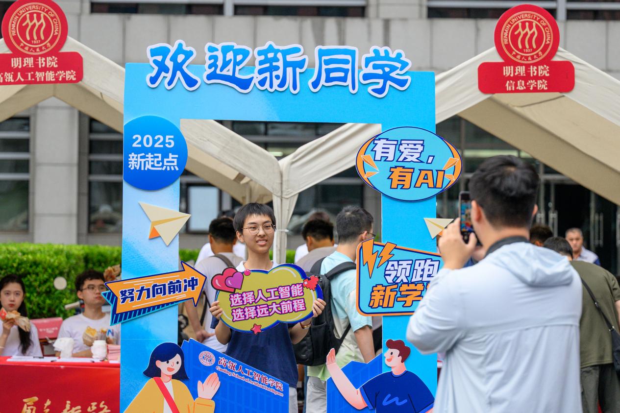 完成报到后,新生们手持学院定制文创纪念品,在主题展板前绽放笑容,镜头定格下他们初入人大的崭新形象。一张张照片不仅是大学生涯起点的珍贵记录,更承载着对高瓴人工智能学院的向往与憧憬,成为一份独特而具有意义的入学礼。