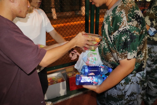 学院为新生们精心准备了满载关怀的慰问物资。张育铭、任安兴和学院学生骨干一同将物资送到同学们手中,并与大家亲切交流。同学们接过这份饱含深情的礼物,纷纷表达对学院暖心关怀的诚挚感谢。在场同学表示,必将以更加昂扬的斗志投入训练,严格自律、不负期望,以优异的军训表现和饱满的精神状态,迎接大学新生活的到来。