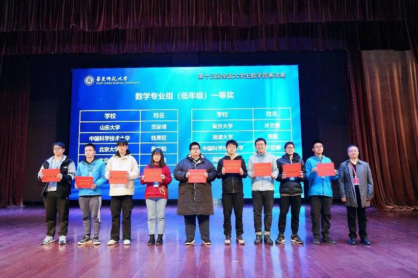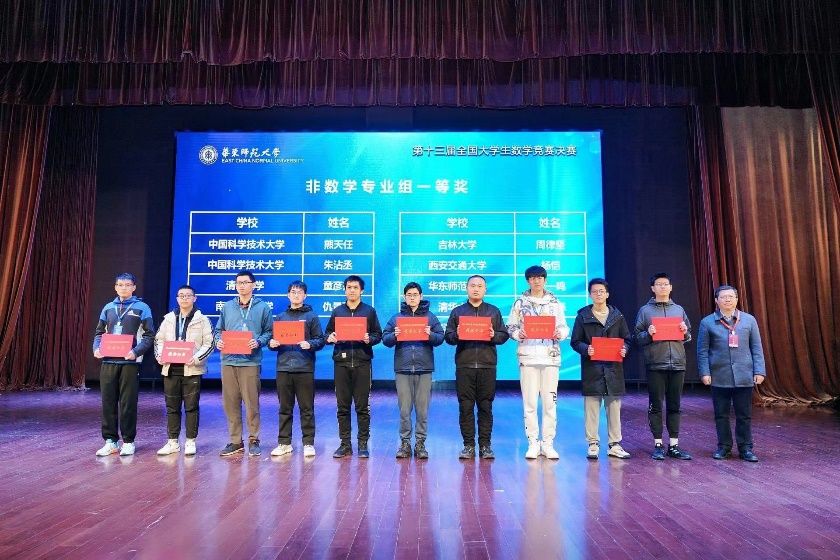 近日,第十三届全国大学生数学竞赛决赛在华东师范大学圆满落幕,中国科大参赛团队荣获佳绩。我校共16名本科生进入决赛,最终荣获9项一等奖、4项二等奖、3项三等奖,一等奖总数位列全国高校第二、非专业组一等奖总数与清华大学并列全国高校第一,在入围决赛人数、一等奖人数、获奖总数上均创我校在该赛事的近年来最好成绩。