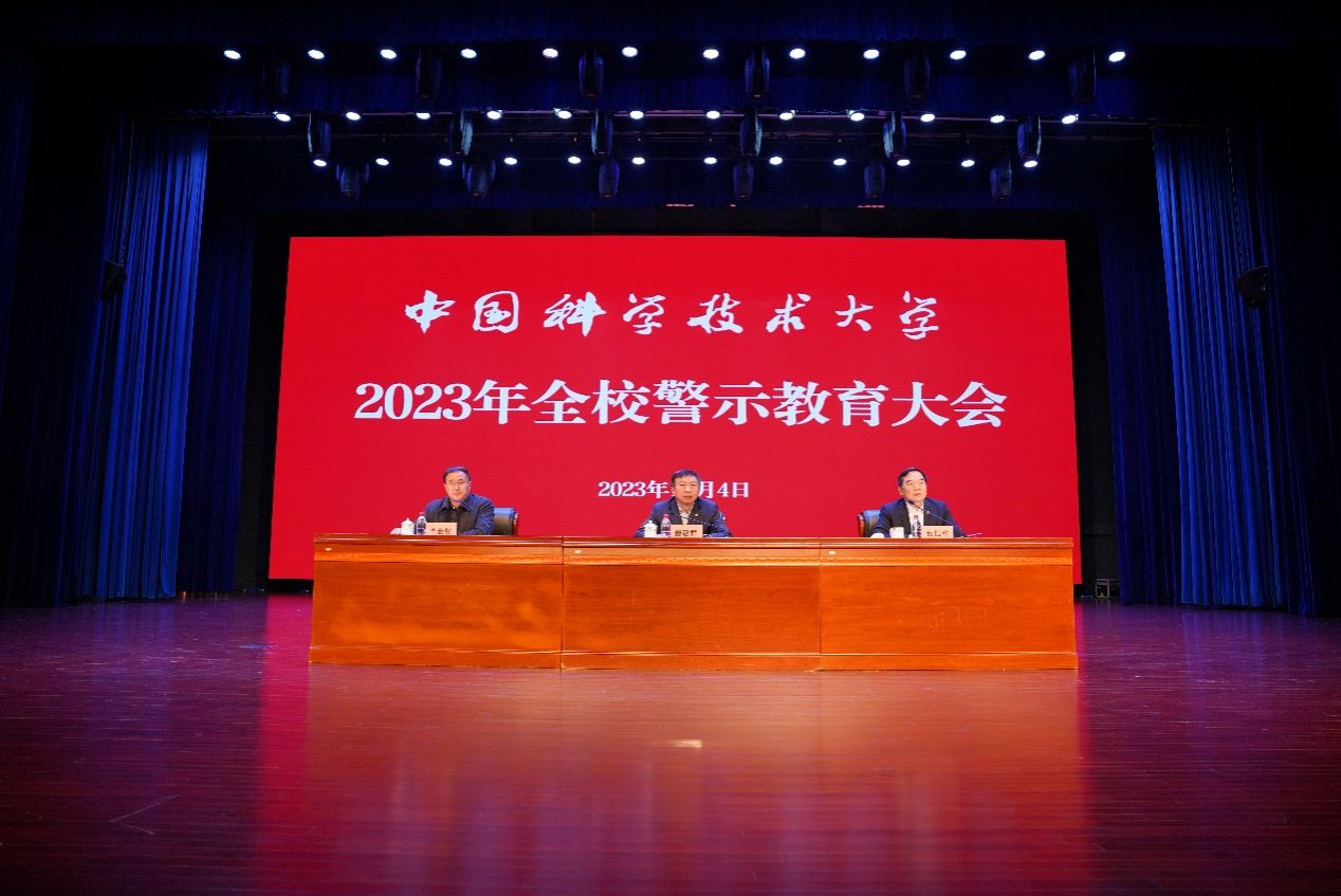 12月4日下午,我校在东区大礼堂召开2023年警示教育大会。校党委书记舒歌群、校长包信和出席会议并讲话,在校校领导在主会场参会。校党委副书记、纪委书记、国家监委派驻监察专员毕金初主持会议并通报警示教育典型案例。