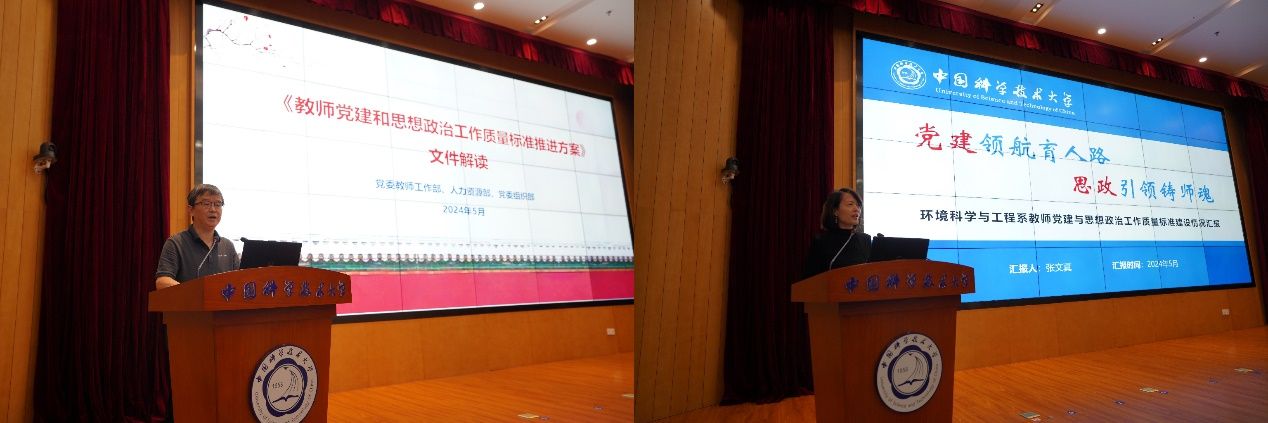 环境科学与工程系党总支书记张文真作《党建领航育人路 思政引领铸师魂》报告,从党的领导、立德树人、精准供给三个方面进行了汇报,就贯彻落实质量标准文件展开交流与分享。