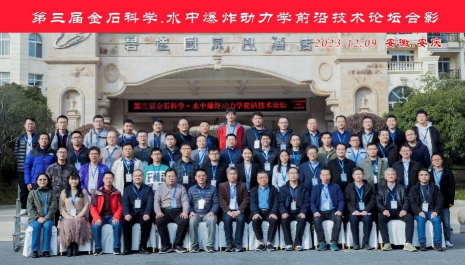 12月8日至10日,由中国力学学会爆炸力学专业委员会水中爆炸动力学专业组主办,中国科学技术大学工程科学学院、中国科学院材料力学行为和设计重点实验室承办的第三届金石科学·水中爆炸动力学前沿技术论坛在安徽安庆举办。中国力学学会副理事长戴兰宏研究员,中国力学学会爆炸力学专业委员会姚小虎秘书长,专业组顾问、中国船舶重工集团公司学科带头人第702所刘建湖研究员,专业组组长、西安近代化学研究所宋浦研究员,专业组副组长金辉研究员,同济大学计算力学与数值仿真研究所副所长王莉华教授等来自全国23所高校和科研院所的水中爆炸动力学领域的60余位专家、学者参加了本次论坛。