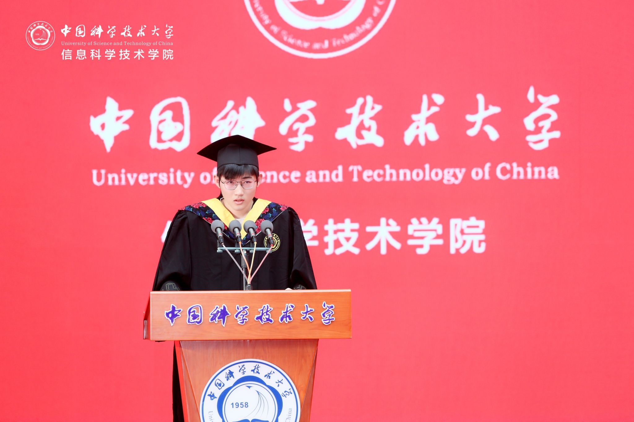 锦瑟年华,书生意气曾纵马;风华正茂,才俊携手共天涯。本科生毕业生代表白寅岐和研究生毕业生代表范孝帅相继发言。白寅岐在发言中回顾了四年的大学时光,表达了对母校、师长和同窗的深厚感情。范孝帅则分享了研究生阶段的科研经历和成长感悟,并对未来的道路充满信心。当好新时代的追梦人,既要有鲲鹏展翅冲霄汉的远大理想,更要有不忘初心担使命的实际行动。青年一代,有理想、有本领、有担当,国家就有前途,民族就有希望。新一批信息学院毕业生们将怀着自己的热爱与梦想出发,实现自己的别样青春,续写科大人的荣光。