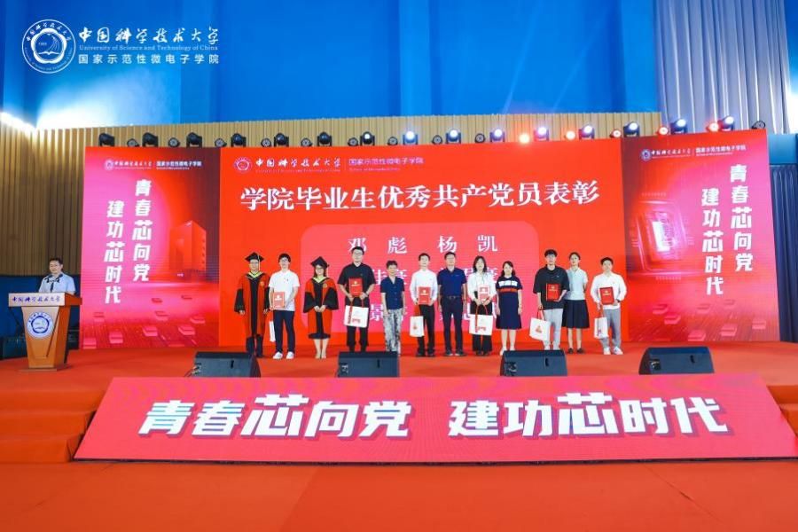 博学而笃志,切问而近思。朱云浩宣读微电子学院2024届中国科学院院长奖名单、安徽省优秀毕业生名单和毕业生优秀共产党员名单,嘉宾们共同为15位获奖者颁奖。微电子学院像一座青春驿站,同学们在这里收获了学业上、生活中的喜悦和成功,努力成长为德智体美劳全面发展的“六有”大学生。
