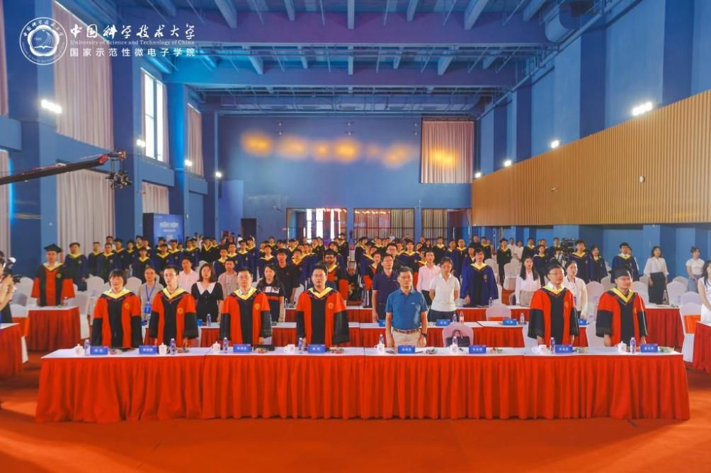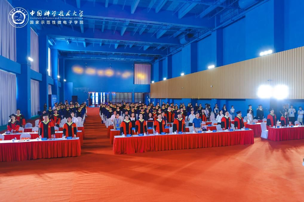 “微”光成炬,“芯”向未来。6月18日上午,微电子学院2024年毕业典礼暨学位着装授予仪式在高新园区羽毛球馆举行。院领导龙世兵、朱云浩、程林及其他党政班子成员,校友代表、恒烁半导体(合肥)股份有限公司董事长吕向东,导师代表左成杰教授、孙海定教授、郑柘炀教授、岳夫永教授等以及部分教师出席典礼。院党总支书记朱云浩主持仪式,2024届全体毕业生及部分亲友参加本次典礼。