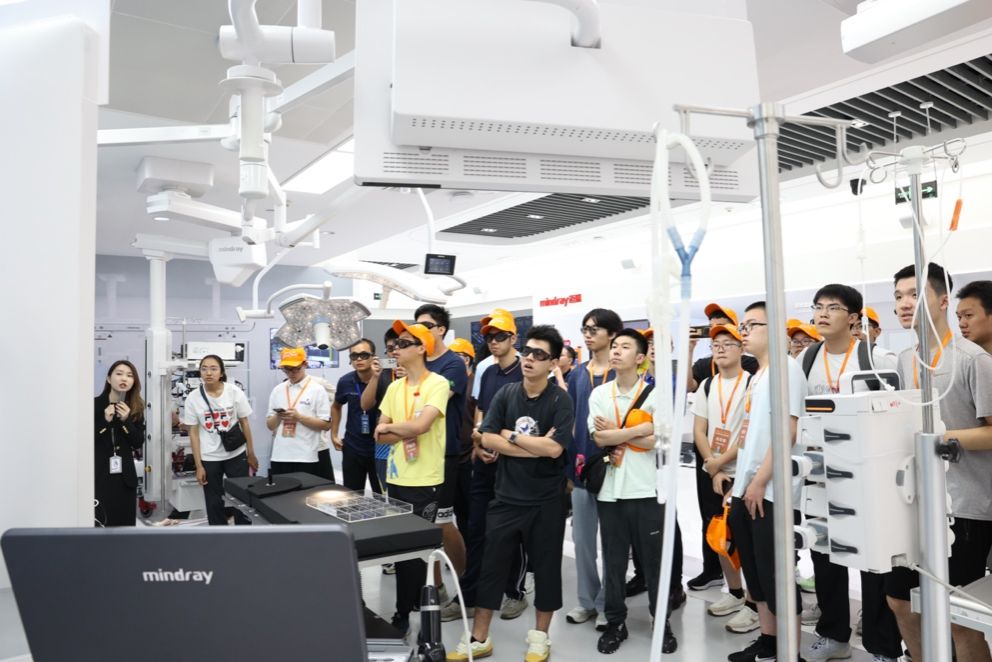 在迈瑞医疗,同学们参观公司展厅与可靠性检测实验室,并聆听由集团高级副总裁李新胜带来的“医疗器械行业的前沿技术和创新成就”专题报告,了解国产高端医疗设备的研发现状,以及医疗智能化对降低医疗成本、提高医疗效率的重要意义。