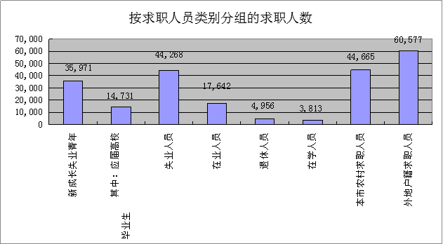 从文化程度上看,高中和初中以下学历的求职人员占求职总数的65.83%,整个人力资源供给市场学历仍相对较低,人力资源供给的素质结构需要进一步提升。
