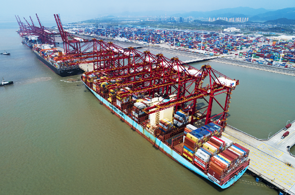 今年1至8月,宁波舟山港积极应对复杂的国际经贸形势以及台风影响,不断优化服务和资源配置,累计完成货物吞吐量75253万吨、集装箱吞吐量1886万标准箱,同比分别增长7%、6.1%。