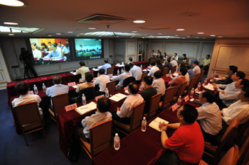 为了贯彻党中央、国务院关于抗震救灾工作的各项部署,落实张德江副总理检查指导国资委抗震救灾工作的重要指示精神,国资委5月24日召开中央企业抗震救灾和恢复重建工作视频会议,通报了中央企业抗震救灾情况,并部署下一阶段的抗震救灾和恢复重建工作。国资委主任、党委书记李荣融主持会议并讲话,国资委党委委员、副主任黄丹华,国资委党委委员、纪委书记贾福兴出席了会议。