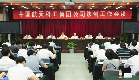 会上,党组成员、纪检组长高福来做了《开拓创新,锐意进取,努力开创航天科工法制建设新局面》的工作报告。表彰了“五五”普法、依法治理18家先进集体和30名先进个人。航天科工党组书记、总经理许达哲在大会上发表了重要讲话,对加强法制建设提出了五点要求。一是要充分认识加强法制建设的重要性和紧迫性;二是各级领导干部学法、知法、用法必须以身作则;三是要进一步建立健全法律风险防范机制;四是要进一步加强和完善规章制度体系建设;五是要进一步加强法律顾问队伍建设。