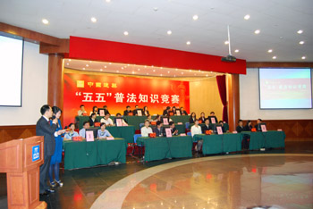 为贯彻落实中宣部、司法部、全国普法办和国务院国资委关于进一步加强“五五”普法工作的要求,提高广大职工的法律素养,4月15日,中国建筑工程总公司举办了“五五”普法知识竞赛活动。国务院国资委于吉局长、王黎晓处长、中国建筑工程总公司副总裁曾肇河、法律事务部总经理秦玉秀等出席了比赛。
