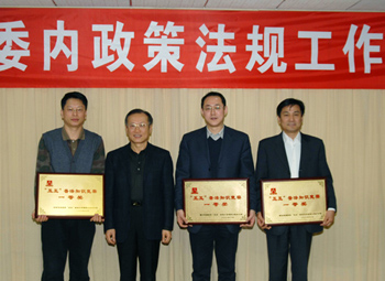 会议还对委机关“五五”普法知识竞赛活动进行了总结,对获奖单位进行了表彰。黄淑和副主任向获奖厅局颁发了奖牌。2008年4月份开始,委普法办在委机关组织开展了“五五”普法知识竞赛活动,21个厅局全部参加竞赛,18个厅局实现了厅局级领导干部和在编人员100%参赛。按照竞赛评分办法,监事会局、群工局、法规局获得一等奖;综合局、产权局、企干二局、宣传局、人事局、管理局、纪委获得二等奖;办公厅、评价局、规划局、改革局、改组局、分配局、企干一局、党建局、研究局、外事局、机关党委获得三等奖。