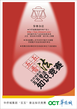 华侨城集团专门设计和印制了“五五”普法专题海报,同时借助IT手段,量身定制了一套网上答题系统,成功在集团协同办公系统上搭建互动的学习竞赛平台,大大提高了员工学习和竞赛效率。中国海油通过网络等多种方式开展普法活动,三级以上子企业覆盖率达100%。