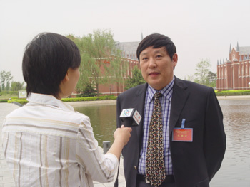 上海宝钢集团公司总法律顾问陈德林在会议间歇接受采访