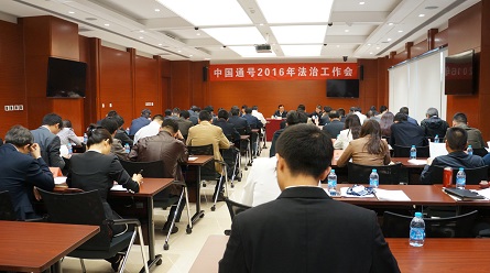 股份公司监事会主席田丽艳主持会议并做工作报告,报告总结了2015年法治工作,回顾了过去十年公司法治工作的发展历程,提出了“十三五”法治工作总体目标,部署了2016年重点工作,强调要提升法治工作的统筹规划能力、法律风险集中管控能力、重点业务参透能力、合规管理能力、公司权益保障能力、法律人员队伍素质能力等六种能力。