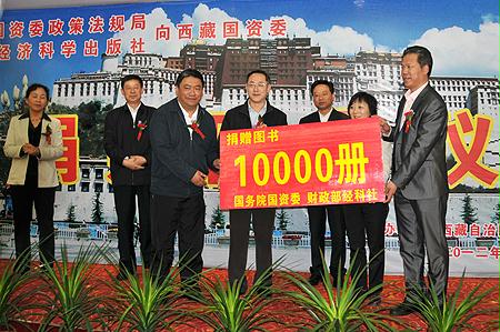 2012年7月23日,国务院国资委政策法规局、财政部经济科学出版社联合向西藏自治区国资委捐赠图书仪式在拉萨举行。西藏自治区副主席丁业现、国务院国资委政策法规局局长周渝波、财政部经济科学出版社总编吕萍、西藏国资委书记次成甲措、副主任金思宇等出席了捐赠仪式。