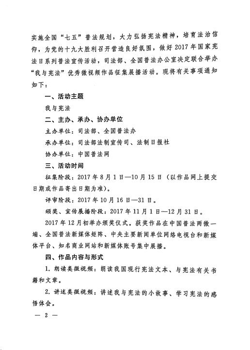 附件:司法部 全国普法办 关于开展“我与宪法”优秀微视频作品征集展播活动的通知