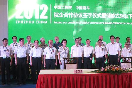 8月10日,中国工程院、湖南省人民政府、中国南车在湖南株洲举办中国工程院和中国南车院企合作协议签字仪式暨储能式轻轨车下线典礼。合作双方将在“战略咨询服务、合作研发和成果转化、科技合作与交流活动、高端科技人才引进和培养”等方面开展合作。国务院有关部门参加了签字仪式,国资委副主任黄丹华出席并致辞。
