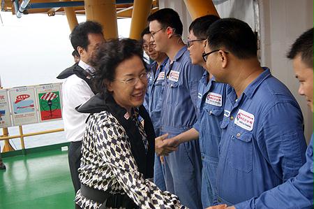 近日,国资委副主任黄丹华到中海油湛江分公司涠洲油田作业区进行调研。涠洲油田作业区是湛江分公司的产油第一大户,年产量约120万吨,为中海油建成“海上大庆”做出了突出贡献。在涠洲11-1海上钻井平台,黄丹华看望了钻井平台工作人员,对他们克服困难长期在海上作业,为保障国家能源安全做出的贡献表示慰问和感谢。黄丹华参观了钻井平台生产作业区和部分生活区,听取了有关情况汇报,充分肯定了作业区在创新管理模式、员工培训和团队建设、坚持绿色安全生产方面所取得的成绩,并希望公司继续发扬艰苦奋斗的优良作风,依靠技术创新,落实各项安全生产规程,出色完成生产任务。规划局有关负责同志陪同参加了调研。