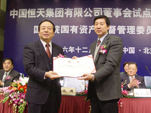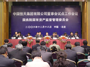 2006年12月18日,国务院国资委在京召开中国恒天集团有限公司(以下简称恒天集团)董事会试点工作会议。国务院国资委党委副书记、副主任王勇出席会议。王勇代表国务院国资委向恒天集团外部董事颁发聘书,恒天集团与外部董事签订服务合约。随后,王勇代表国资委就恒天集团董事会试点工作发表讲话。恒天集团董事会有四位外部董事:周明臣、任传俊、王振侯、高世星,非外部董事目前为四人,分别是:王天凯、常俊传、刘海涛、杨永元,之后职工董事将由民主选举产生。至此,恒天集团董事会试点工作正式启动,恒天集团建立现代企业制度、完善法人治理结构工作进入了新阶段。