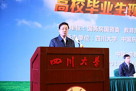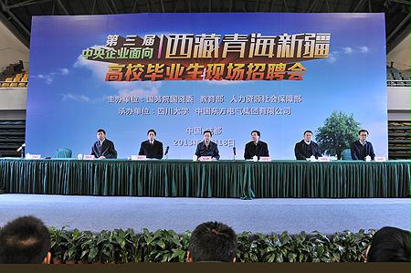 为贯彻党的十八大和十八届三中全会精神,深入落实中央关于援藏、援青、援疆工作的总体部署,积极做好促进西藏青海新疆高校毕业生,特别是少数民族高校毕业生就业工作,12月18日,国资委、教育部、人力资源社会保障部在四川大学联合举办“第三届中央企业面向西藏青海新疆高校毕业生现场招聘会”。国资委副主任徐福顺、人力资源社会保障部副部长信长星出席招聘会并讲话。74家中央企业代表和20多所高校代表参加了本次招聘会。