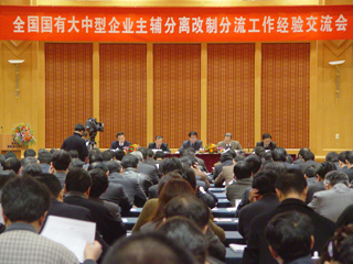 根据国务院再就业工作部际联系会议安排,国务院国资委、劳动和社会保障部、财政部、国家税务总局四部委于11月26日-27日在北京联合召开全国国有大中型企业主辅分离改制分流经验交流大会。中央政治局常委、国务院副总理黄菊专门对这次会议和主辅分离工作作了重要批示:“国有大中型企业主辅分离改制分流,既是从实际出发,解决国有企业冗员负担与社会再就业矛盾的有效途径,也是新形势下深化国有企业改革,精干壮大主业,提高核心竞争力的一项重大举措,是今后国有企业分流富余人员的重要形式。希望各地区和企业在已经取得成效的基础上,认真总结经验,进一步提高认识,坚定信心,增强工作的紧迫感和主动性,细化完善操作办法,妥善处置遇到的矛盾和问题,扎扎实实地继续推进国有企业主辅分离改制分流工作”。国务院国资委副主任邵宁、劳动和社会保障部副部长张小建、国家税务总局副局长王力等有关领导出席会议并做重要讲话。全国30个省市自治区的国资委、劳动保障厅(局)的有关工作负责同志、88家中央企业有关工作负责同志也出席了会议。河北省国资委、重庆市劳动保障局以及17家中央企业总结交流了近两年来实施主辅分离、辅业改制、分流安置富余人员工作的做法和经验。