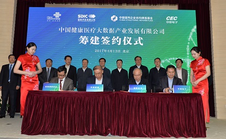 为加快落实党中央、国务院关于发展健康医疗大数据的战略部署,推进健康医疗供给侧结构性改革,切实履行央企使命,在国家卫生计生委和国务院国资委的指导下,中国电子信息产业集团公司、国家开发投资公司、中国联合网络通信有限公司、中国国有企业结构调整基金股份有限公司共同发起设立中国健康医疗大数据产业发展有限公司。该平台公司将致力于孵化和培育健康产业,构建健康医疗大数据产业生态系统,推动国家基础性健康医疗大数据建设。