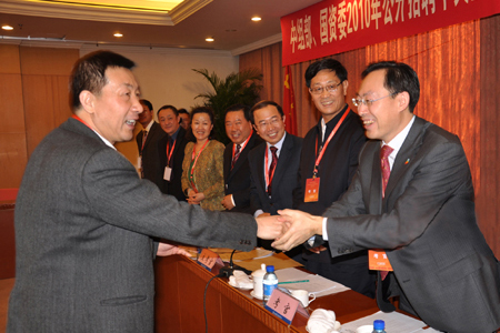 12月4日至5日,中组部、国资委2010年公开招聘中央企业高级经营管理者面试工作在北京举行,114名考生在1001名报考人员、307名笔试人员中脱颖而出,分别参加了13个职位的面试。面试中,国资委主任、党委书记王勇,中组部副部长王尔乘,国资委副主任、党委委员金阳到现场巡视。