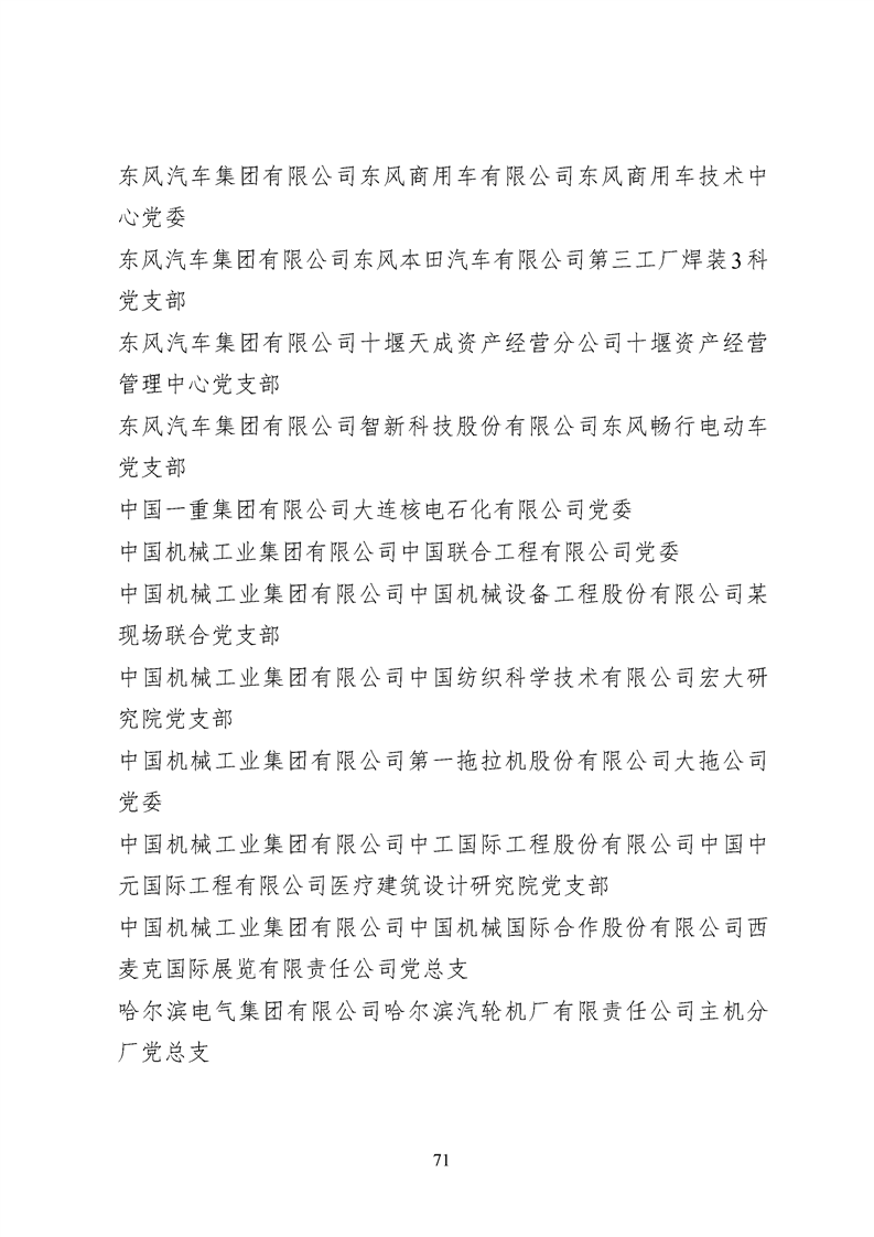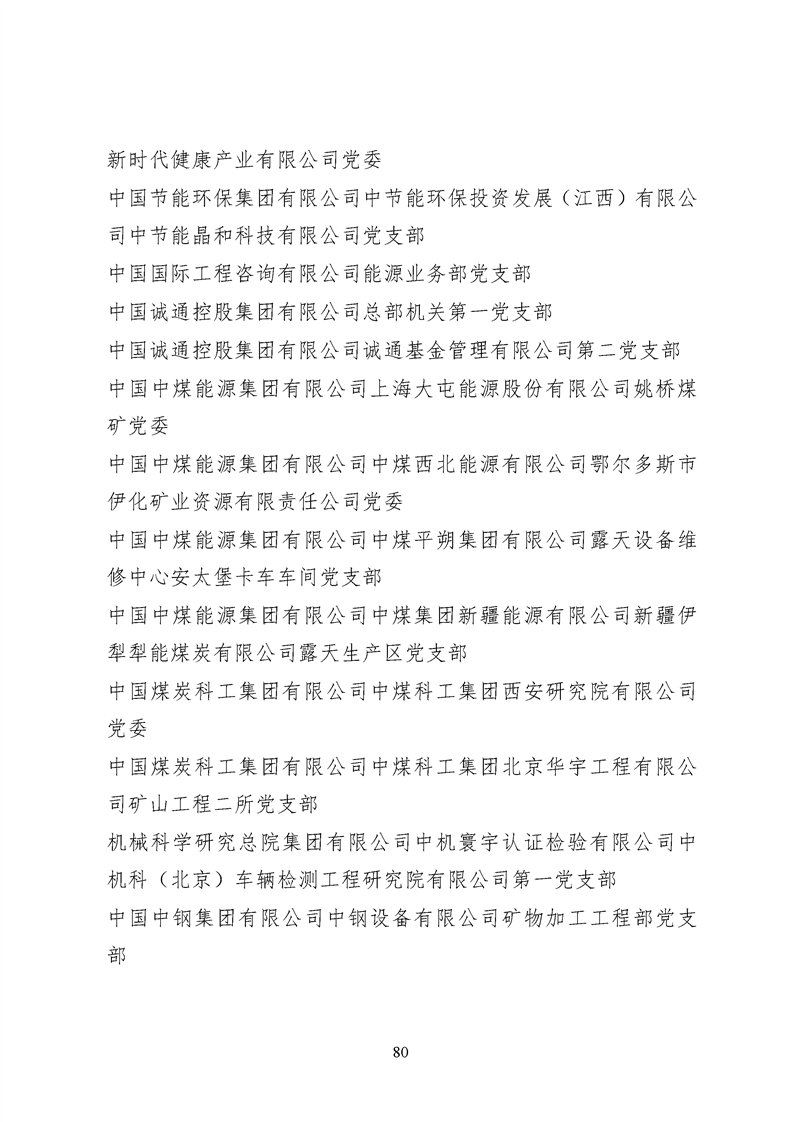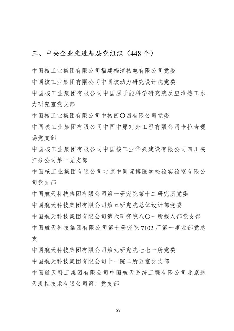 为表彰先进、弘扬正气,激励各级党组织和广大共产党员在把握新发展阶段、贯彻新发展理念、构建新发展格局中奋发有为、建功立业,国资委党委决定,授予邢继等338名共产党员“中央企业优秀共产党员”称号(含追授2名),授予王军艳等205名党务工作者“中央企业优秀党务工作者”称号,授予中国核工业集团有限公司福建福清核电有限公司党委等448个基层党组织“中央企业先进基层党组织”称号。这次表彰的优秀个人和先进集体是中央企业各条战线上的杰出代表,他们的先进事迹和崇高精神充分展示了新时代共产党人的先进性和纯洁性,生动诠释了中央企业共产党员的初心和使命,彰显了国有企业先进精神的无穷伟力。