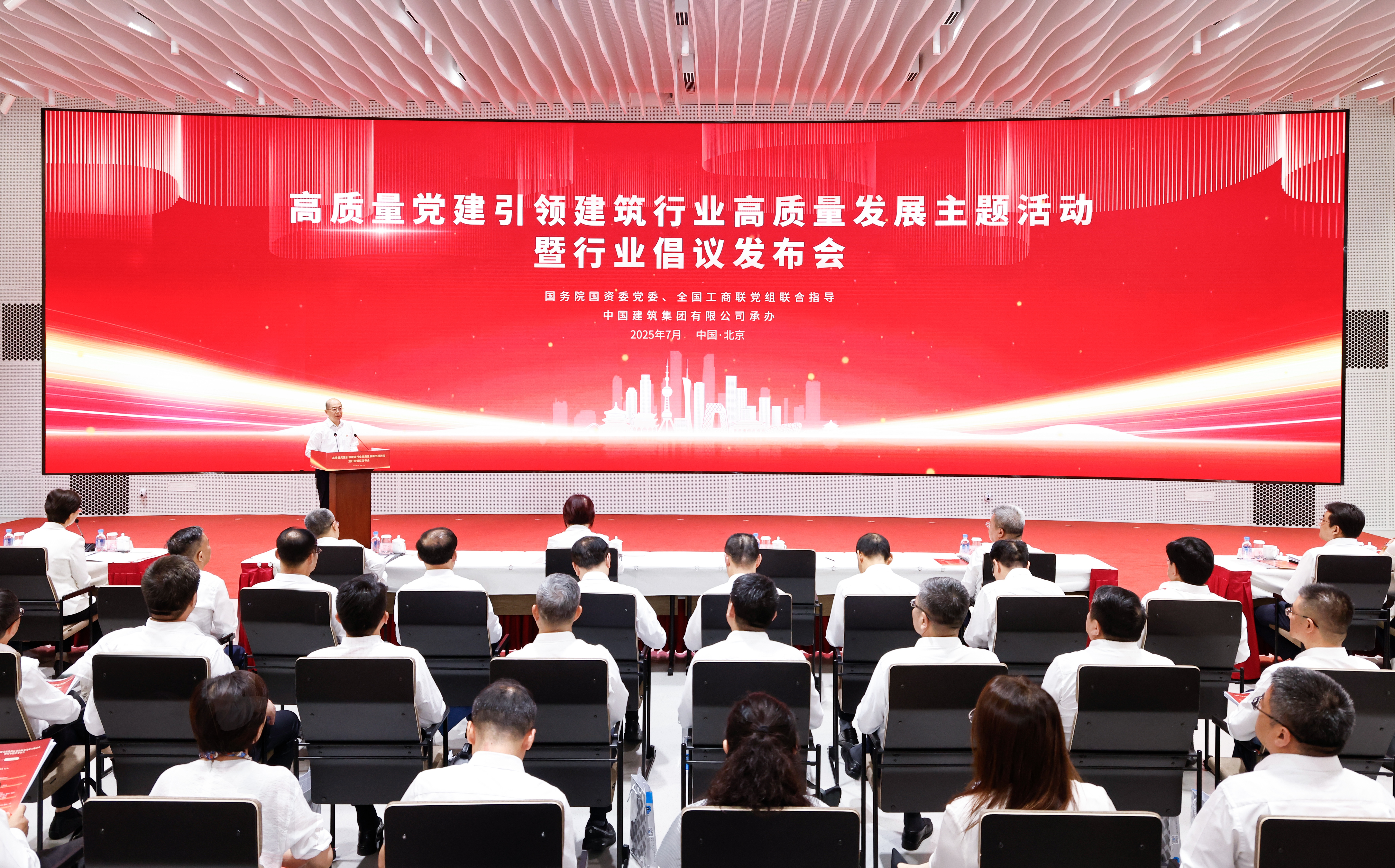 7月7日,国务院国资委党委和全国工商联党组共同在京举办高质量党建引领建筑行业高质量发展主题活动暨行业倡议发布会,深化拓展中央建筑企业党建提质增效工作,从党的领导、党的建设着手助力和引领行业转型。国务院国资委党委委员、副主任谭作钧,全国工商联党组成员、副主席汪鸿雁出席会议并讲话。