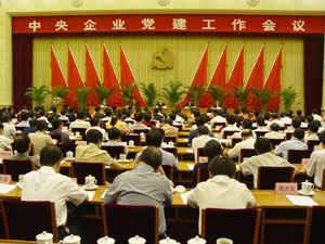 国务院国资委6月28日在京召开中央企业党建工作会议,庆祝建党85周年,总结国资委成立以来中央企业党建工作,安排部署当前和今后一段时期中央企业党建工作,表彰先进,交流经验。国资委主任、党委书记李荣融出席会议并做重要讲话。国资委党委副书记、副主任王勇,国资委副主任、党委委员王瑞祥、黄淑和,国资委党委委员、纪委书记贾福兴出席会议。中央企业党建工作负责同志,国资委有关厅局负责同志等近400余人参加了会议。