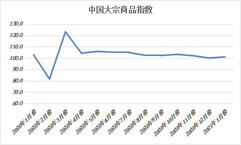 由中国物流与采购联合会调查、发布的2021年1月份中国大宗商品指数(CBMI)为101.1%,较上月回升1.0个百分点。各分项指数中,供应指数、库存指数止跌回升,销售指数则继续回落。从本月指数的变化情况来看,本月指数止跌回升,主要是受到代表供应端的供应指数和库存指数止跌回升拉动所致,而销售指数持续回落,显示当前国内大宗商品市场供大于求的压力继续显现,商品库存仍在积压。后期随着春节来临,受节日因素影响,市场终端需求基本停滞,加之政策方面的利好或转为利空,一方面国内经济基本上恢复常态,保持超宽松货币的必要性下降;另一方面为稳杠杆和一季度滞后性不良资产攀升预留政策空间。2020年需求回补式高增长不再出现,短期因信用收紧和需求走弱,市场下行风险增加。