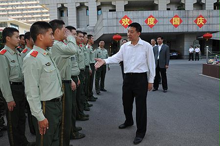 2012年10月1日上午,国资委主任、党委书记王勇来到机关值班室、武警驻地、保卫处、食堂,看望并慰问坚守在工作岗位上的值班人员、武警战士和后勤保障人员,向他们致以节日的问候!
