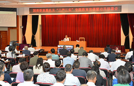 5月19日,国资委召开处级以上干部大会,国资委主任、党委书记张毅为大家讲“三严三实”专题党课,和大家一起深入学习领会习近平总书记关于“三严三实”的重要论述,贯彻落实中央关于开展“三严三实”专题教育的决策部署,对委直属机关开展专题教育进行动员。国资委副主任、党委委员黄丹华主持会议。国资委党委委员、监事会主席,总会计师、副秘书长出席会议。中央组织部干部四局有关同志到会指导。