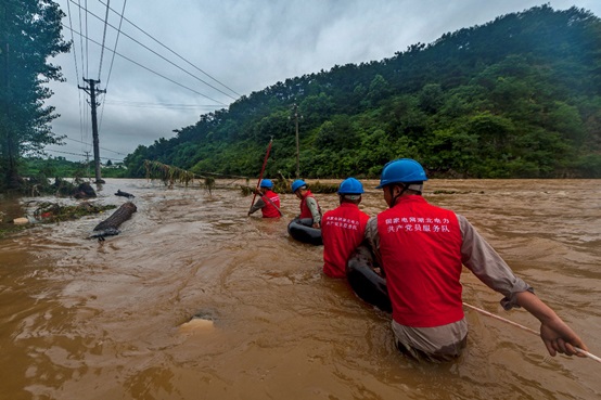 为保护电力设施,保障电力供应,中国华电江苏公司所有检修、安保等专业管理人员轮流值守,党员突击队、青年突击队坚守抗灾抢险前线,确保人员及设备安全,确保电厂用煤需求;中国电建武汉地铁11号线抗洪抢险突击队历经24小时,共转运沙袋千余袋,将围堰加高至1米,保护了变电所安全,挽回损失百万元;神华国华九江电厂职工在高温下加固输煤二号转运站12米基坑边坡,抢修了近300米的水上便民通道,守住了电厂能源供应的“咽喉”,为地方群众搭建起一座“连心桥”。