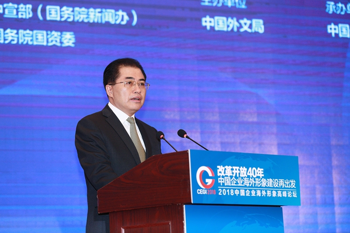 2018年12月12日,由中央宣传部(国务院新闻办)和国资委共同指导、中国外文局主办的2018·中国企业海外形象高峰论坛在北京召开,国资委副主任翁杰明出席并致辞。
