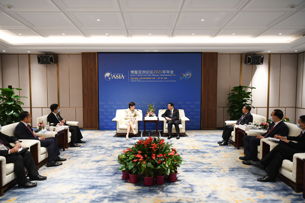 4月20日,国务院国资委党委书记、主任郝鹏在出席博鳌亚洲论坛2021年年会期间会见了香港特别行政区行政长官林郑月娥。双方就进一步加强合作,高质量共建“一带一路”,推动国资央企助力香港继续抓好疫情防控、保持经济社会繁荣稳定等进行了深入交流。国务院国资委党委委员、秘书长彭华岗参加会见。