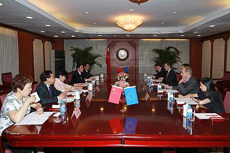 6月16日下午,国务院国资委主任王勇在委内会见了欧盟新任驻华大使艾德和先生一行。