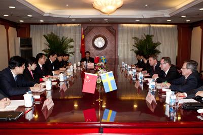 3月17日下午,国务院国资委主任王勇在委内会见了瑞典爱立信集团总裁兼首席执行官卫翰思先生一行。