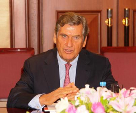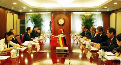 10月13日上午,国务院国资委主任李荣融在委内会见了德国蒂森克虏伯公司董事会主席舒尔茨博士一行。舒尔茨博士介绍了蒂森克虏伯公司的业务范围及与中国企业的合作情况,并希望与更多的中央企业进行合作。荣融主任对此表示支持,并指出双方应在技术、员工培训和企业管理等多方面加强交流。双方还就中国钢铁行业的现状和未来发展趋势等问题交换了意见。