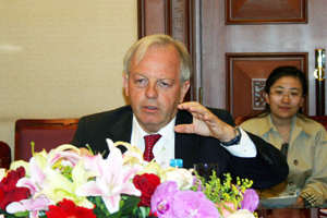 李荣融介绍了中国当前的经济形势,中央企业应对金融危机的措施和取得的良好成效。他表示,国资委将继续支持上海贝尔的发展,希望阿朗集团能够抓住中国通信产业转型的机遇,充分利用中国的人才资源和成本优势,加大在华研发投入,提高上海贝尔的国际竞争力。加缪感谢中国政府特别是国资委对阿郎集团的支持,并表示将继续加大投入,进一步发挥上海贝尔的比较优势,提升其在集团中的作用。