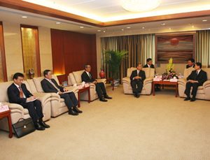 10月17日,国务院国资委主任李荣融在京会见了日本住友商事株式会社前任会长、日中经济协会副会长宫原贤次一行。李荣融介绍了中央企业在美国次贷危机后采取的相关措施,并指出在全球经济一体化的形势下,中日两国企业互补性强,可以相互借鉴,共同度过难关。宫原贤次表示,日本企业希望在更广阔的领域与中央企业开展合作,共同应对此次由美国次贷危机引发的全球金融风暴。双方还就其他共同关心的话题交换了意见。
